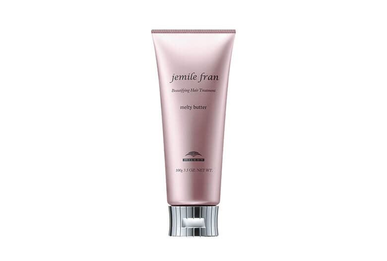 【1】適量を手のひらの体温で溶かしよく伸ばしてから、タオルドライした髪の中間→毛先→表面の順につけます。